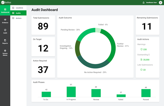 Designed specifically for use in financial institutions, Seedbase is a financial system that enables data collection, sharing of progress between different parties, and analysis of results in a secure single system. With configurable workflows and targeted notifications, Seedbase enhances insight into the audit pipeline, allowing users to meet federal guidelines.