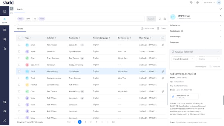 Shield FC is a cloud-based solution that helps financial compliance teams monitor employee communications and detect market manipulation processes. Designed specifically for the financial and energy sectors, the centralized communication compliance platform ensures coverage across various channels, including email, chat, social media, text, and voice messages.