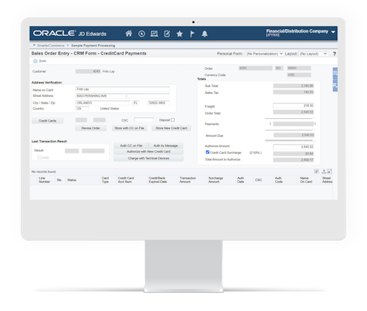 SmarterCommerce Payment facilitates secure and flexible payment processing by integrating directly with JD Edwards ERP systems. SmarterCommerce prioritizes the safeguarding of sensitive financial information by ensuring that cardholder data is not retained within the JD Edwards system or on its cloud, thereby helping businesses adhere to PCI compliance requirements more efficiently.