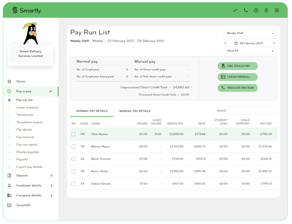 Smartly is cloud-based payroll software that helps businesses pay employees on time in accordance with legislation. It includes a self-service portal that allows employees to access their payroll details, approvals, payslips, timesheets, and more.