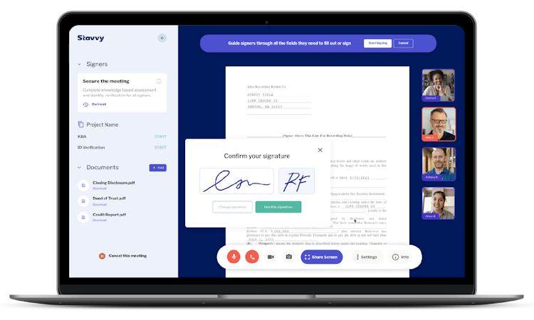 With archived session data, regulatory integration, and ID verification, Stavvy helps reduce risk and provide you with the confidence our industry demands. At Stavvy, we are transforming the real estate transaction into a swift, secure, data-driven experience. Join us in: Moving real estate beyond documents.