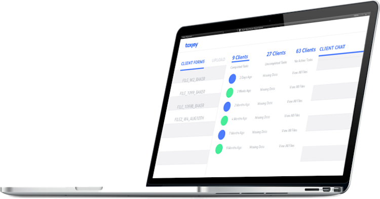 Taxjoy enables users to send and receive client messages securely from a single interface. All communications are organized by client and can be replied to directly through the Taxjoy platform, including emails. Both professionals and clients can view and search through their historical communications, and share documents securely. All documents are organized by type, such as W-2, 1099, etc. in order to help professionals with the tax preparation process.