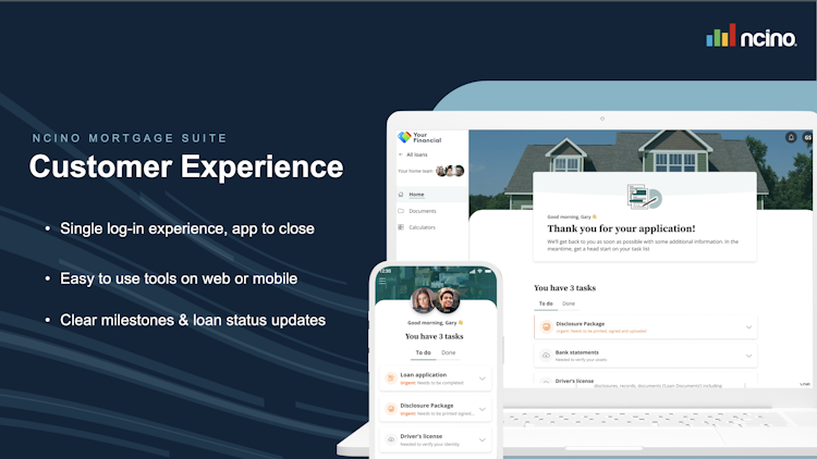 Unlock new levels of efficiency and profitability with nCino’s Mortgage Suite (formerly: SimpleNexus). The cloud-based solution automates application, origination, and closing, delivers modern customer convenience, surfaces data insights, and simplifies incentive compensation management.