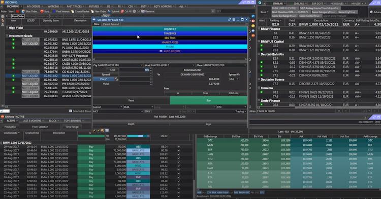 TradeSmart's OMS module enables team members to streamline various operational activities, such as order management, rebalancing, allocations, valuations, compliance tracking, and risk assessments. It provides a built-in graphical user interface (GUI), which lets staff members organize multiple dealers and asset classes to handle electronic order routing processes. It also lets employees use the custom filters option to access specific live and historic information across multiple bonds.