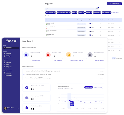 The platform features an extensive suite of capabilities to address compliance challenges. The supplier monitoring system allows mapping, auditing and management of the entire supply chain through automated questionnaires and continuous monitoring that align third party risk assessments with NIS2 requirements. The incident response module employs a risk assessment framework to facilitate rapid handling of security events while maintaining structured documentation workflows that satisfy the directive’s strict twenty four-hour reporting requirement. Reporting tools generate documentation at each stage of incident management from initial notifications through final resolutions and track supplier audits and employee training programs within a centralized dashboard.