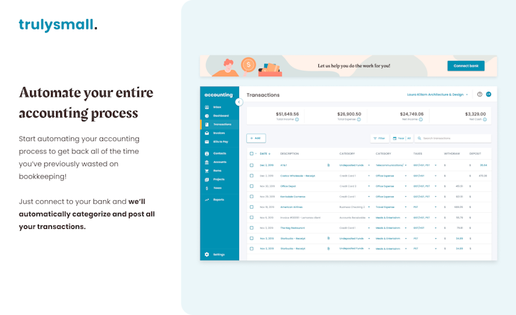 Focused on Automation: The "Auto Post" feature automatically imports and categorizes your bank transactions.