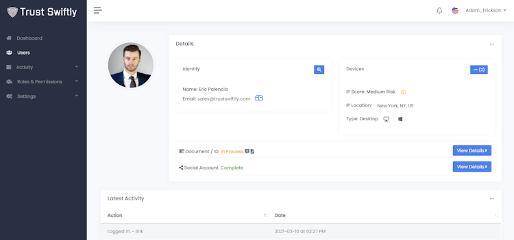 Fraud analysts can receive notifications about each verification and review the user-submitted information to monitor identities. Trust Swiftly can also help automate identity data extraction to create enhanced machine learning models to detect fraud. Enterprises can connect with their existing fraud tools to include advanced authentication requirements to prevent account takeover attacks.