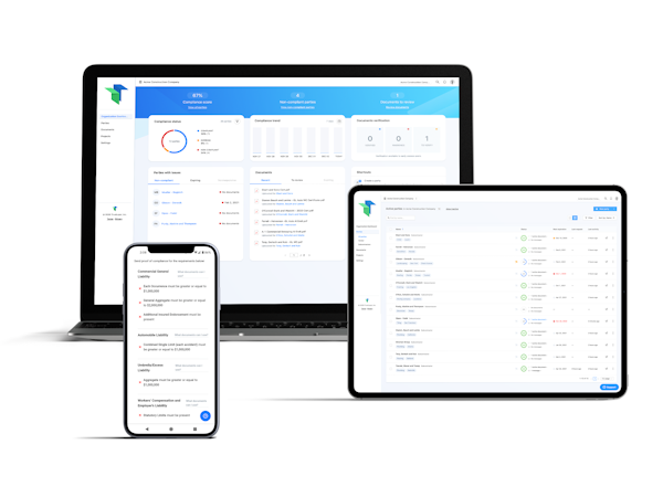 TrustLayer automates the correspondence, collection, storage and verification of common compliance documents, like certificates of insurance (COIs).