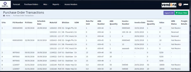 Implementation will enable you to manage vendor database, setup business unit wise module privileges to the vendors, view on advance/delayed shipment notes shared by the vendors, quotations given by the vendors, queries posted by the vendors etc.