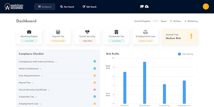 Work From Anywhere (WFA) is a cloud-based platform designed to streamline and automate the complexities of international remote work compliance. As organizations embrace flexible work models, managing the intricate web of global tax laws, employment regulations, and immigration requirements becomes increasingly challenging. WFA helps HR and compliance teams addresses these challenges by providing real-time, automated risk assessments for employee workations and remote work requests, ensuring compliance across multiple jurisdictions.