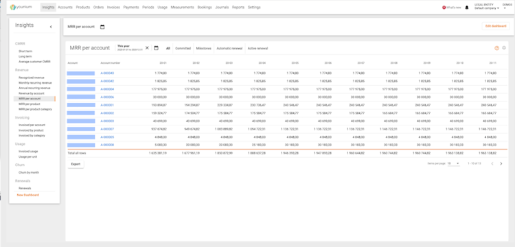 Using Younium, organizations can generate journals with segmentation and access transaction details including customer name, charge type, and product category according to requirements. Administrators can gain insights into subscription metrics through journal summary reports, financial account analysis, and a custom report builder.