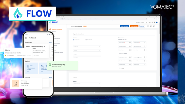 FLOW by VOMATEC is a modern, cloud-based management platform designed specifically for fire departments – from volunteer to professional brigades.