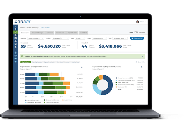 ClearGov is a cloud-based software suite to assist with the administration of local government. It helps manage budgets and assess performance, replacing Excel sheets and paper forms. The software uses a three-step methodology for managing budget cycles. Firstly, data is collected on budget requests through structured web-based forms. This data is conveniently accessible for assessment. Secondly, analysis is then carried out in communication with department heads using visualizations and scenario projections. Thirdly, budget plans may be published for transparency and stakeholder accountability.