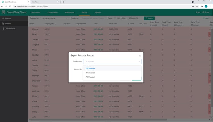 CrossChex Cloud’s user interface