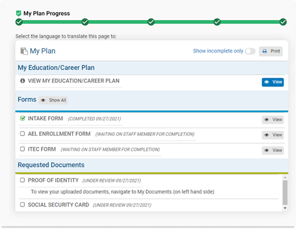 myOneFlow’s rules-based workflows create a personalized virtual experience that guides clients through every step of their journey and helps connect them with the resources they need. Plus, workflows can be configured to capture and report on WIOA data and can be adjusted if reporting requirements change, so it’s easy to ensure compliance.