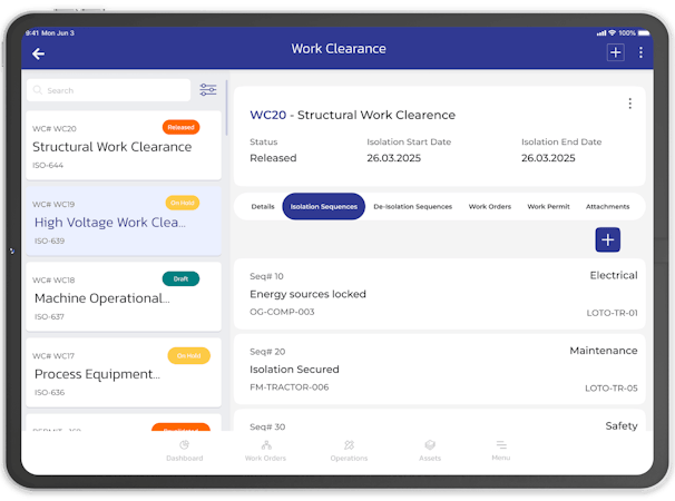 The software offers a set of modules for proactive risk management and compliance automation. Risk assessment tools enable identification evaluation and mitigation of potential hazards with customizable templates that prioritize tasks by criticality. Permit management automates creation review and approval workflows and aligns permits with work orders to maintain compliance during task execution. Isolation control and lockout tagout capabilities provide guided sequences for safe equipment maintenance procedures. Incident management covers the lifecycle of safety events from reporting through investigation to resolution while audit management facilitates scheduling and conducting audits to verify adherence to regulatory standards. Corrective and preventive action tracking addresses safety issues systematically and document control ensures that safety procedures and compliance records remain current and accessible. Training management schedules monitors and records training activities to maintain workforce competencies and field workers access safety checklists and protocols through mobile devices. Real time dashboards and analytics deliver visibility into safety performance metrics compliance status and trend data to support data driven decision making.