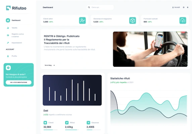 Rifiutoo is a cloud-based solution that helps businesses streamline waste management processes for initial waste producers and environmental consultants. The software is fully interoperable with RENTRI, the National Electronic Register for Waste Traceability, enabling users to seamlessly comply with the latest waste management regulations. It helps streamline the management of waste-related documents including registers, forms, and environmental declaration models (MUD). The solution also helps automatically generate and submit MUD forms while providing digital registration of waste movements and the ability to print registers directly from the user's workstation. Additionally, Rifiutoo offers business intelligence capabilities, providing users with valuable waste management statistics to optimize their processes.