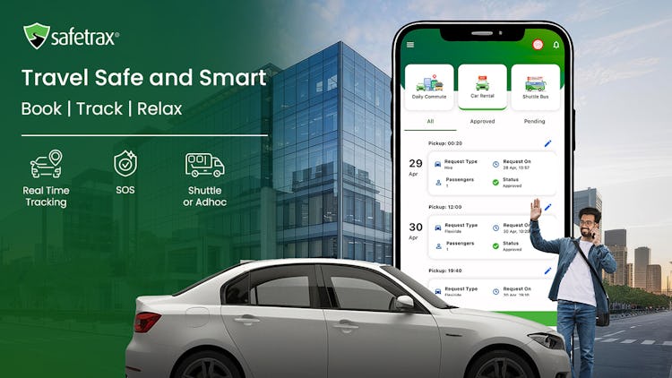 Safetrax is an employee transport automation solution that helps businesses streamline corporate commuting operations through a cloud-based platform. The system offers different transportation management modules, including fixed home-to-office commute scheduling, shuttle booking management with seat reservation capabilities, and ad-hoc trip coordination for special transportation needs.