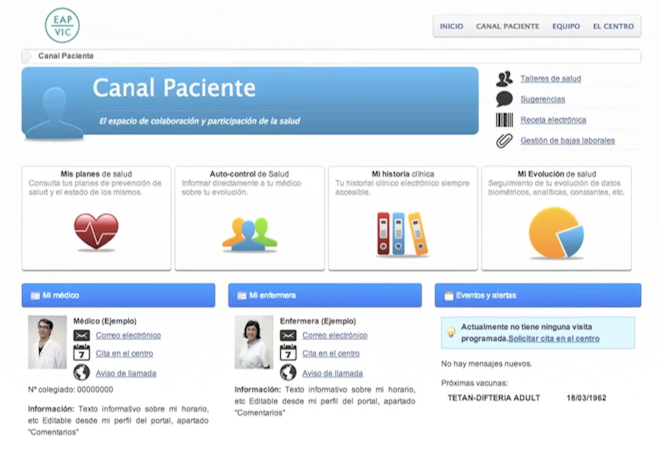 This software streamlines mechanizes and saves time in communications between health centers and patients. It can be used for video consultations organized to suit the agenda and the services offered by each professional; to schedule visits, plan the necessary consultations and tests; it can also issue private medical prescriptions, which can be downloaded in the patient's own home. It also has a shared space for analysis, medical reports, non-pharmacological prescriptions, and other activities.