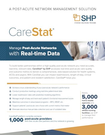 CareStat is a web-based clinical operations management software designed to improve coordination between accountable care organizations (ACOs) or hospitals and home health providers about patients' re-admissions, care plans, progress, and more.
