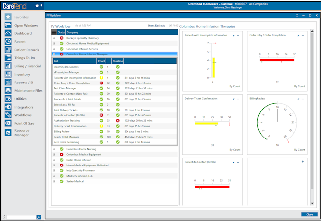 WellSky CareTend includes robust clinical tools such as medication profiles, weight-based dosing, customizable assessments, lab tracking, and care plans. Task-based worklists guide staff through every step of the order lifecycle, ensuring accuracy and efficiency from intake to billing. The platform also supports real-time inventory management with barcode automation, helping organizations reduce waste and maintain optimal stock levels.