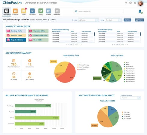 ChiroFusion is a web-based practice management software for chiropractors which includes scheduling, reporting, billing, referral tracking, and medical recording capabilities. ChiroFusion assists users with patient scheduling, with the ability to create one-off and recurring appointments, across multiple providers and facilities, and users can define custom color-coded appointment types. Patients are automatically sent appointment reminders to reduce no-shows, and users can select a two-way text reminder add-on, which allows patients to confirm or cancel their appointments by replying to the reminder text. Confirmations and cancellations are automatically shown in the calendar as a red or green icon next to the patient. ChiroFusion enables users to produce compliant patient notes and treatment reports, and includes an inbuilt SOAP (subjective, objective, assessment, and plan) note creation tool, designed to reduce the time spent on creating patient documents. Users can also create multiple outcomes assessments, which are automatically scored upon completion. Reports can be digitally signed by users, and claims are automatically generated when a report is completed and signed. ChiroFusion allows users to submit claims electronically, with payments automatically posted to accounts with electronic EOBs (explanation of benefits). Cash plans can also be set up for uninsured patients.