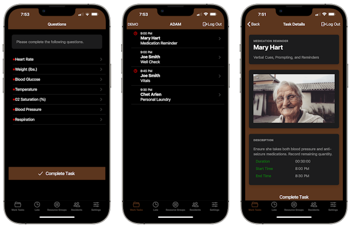 * Have verifiable proof for auditors and family members that each residents care plan task were completed on time and successfully.