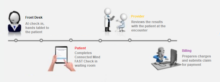 Connected Mind's simple interface allows patients to screen while in the waiting room and results can be delivered directly into the EHR. Our Telehealth / Remote Link functionality allows providers to send a link to patients so they can screen from home.