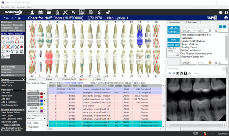 Advanced features include clinical charting and periodontal charting via a Perio Exam Screen that makes entering, graphing and comparing periodontal measurements more intuitive. Ledger tools enable payment collection from patients and insurers, while a credit card module allows cards to be entered or swiped just once. Security settings can be customized to reflect appropriate user levels and DentiMax also supports the ability to create custom patient release forms with tablet registration capabilities. Full technical support with online training is also given, alongside automatic software upgrades and online data backups.