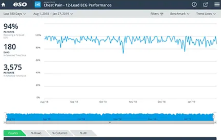 ESO Electronic Health Record (EHR) is a cloud-based software designed to help EMS agencies generate clinical documentation and improve patient care decisions in real-time using treatment guides or reference information.