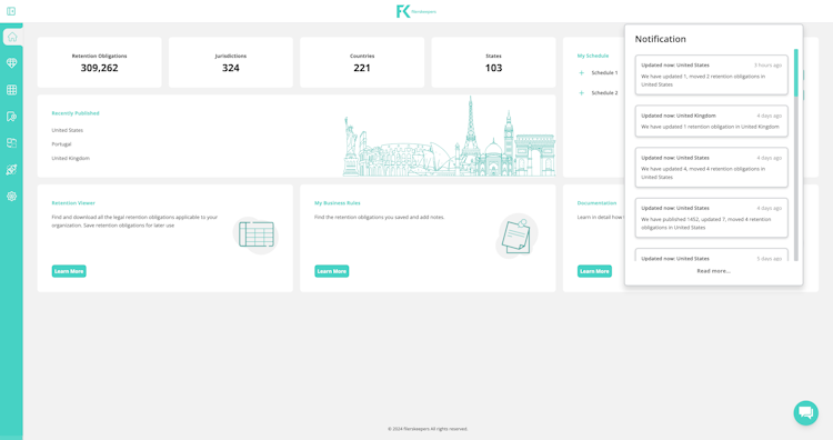 Real-time Legal Updates: Get instant notifications about changes in retention laws, ensuring businesses remain up-to-date and compliant with the latest regulations.