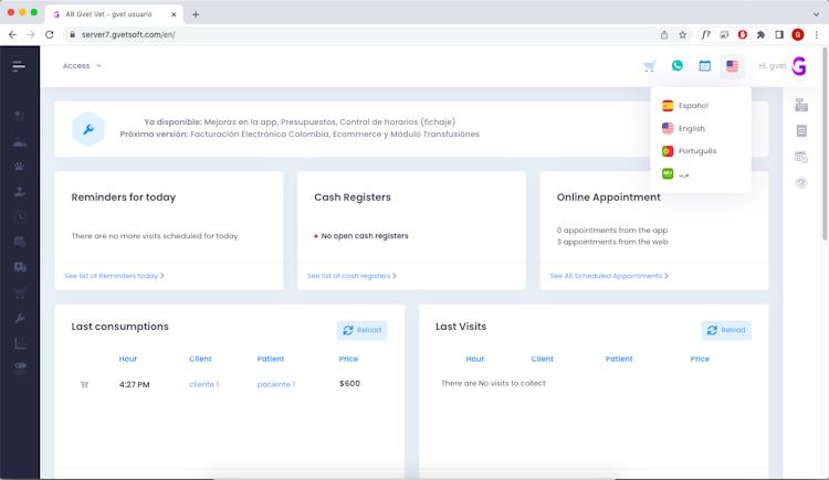 GVET is a cloud-based veterinary management system that allows users to access all vet management functionalities from any device. With GVET, users can manage clients, view patients' clinical history, upload files, control invoices and stock, view the progress of business metrics, and more.