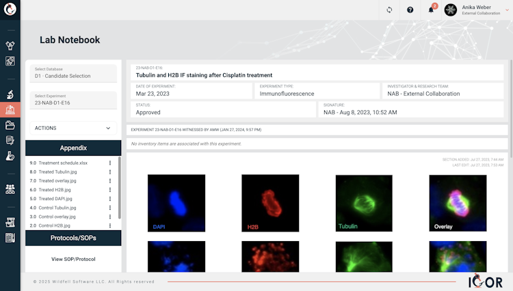 IGOR is a secure cloud-based research documentation platform that offers an electronic lab notebook (ELN), secure data file management, and more. Designed by a scientist with extensive lab experience, IGOR supports a team's workflows, standardizes research documentation, facilitates secure data exchange both within and outside the organization, and includes streamlined features to aid regulatory compliance.