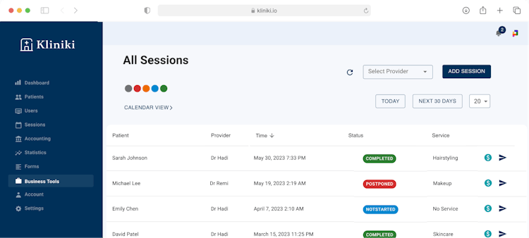 Kliniki is an all-in-one clinic management platform catering to all kinds of practices. Designed for lawyers, doctors, beauty clinic owners, tattoo shopkeepers, or any other practice, Kliniki offers all the tools needed to manage a clinic and specific tools for specific fields. It offers a dental chart for dentists, a medical research tool for surgeons, an inventory system, an exercise dashboard, and much more.