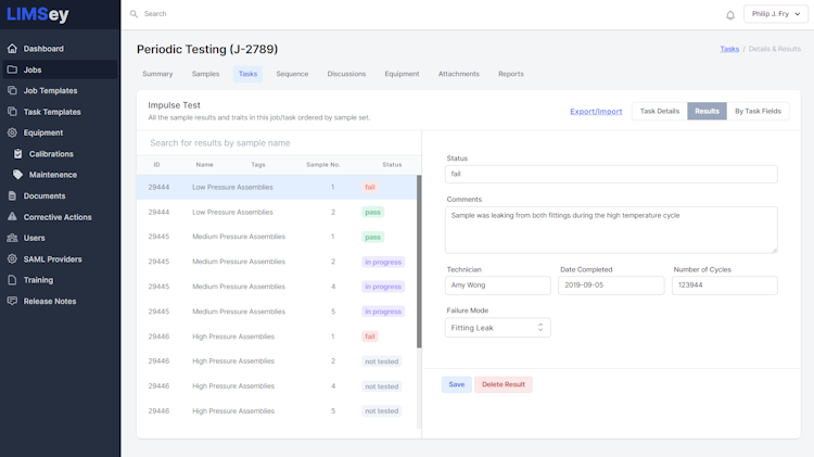 LIMSey is a cloud-based lab management software for engineering, mechanical, environmental, and other physical product testing labs.
