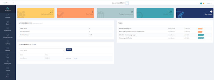 My Junna offers a secure place for organizations to store their clients information, make case notes, store resource data, manage tasks, create action plans, and more!
