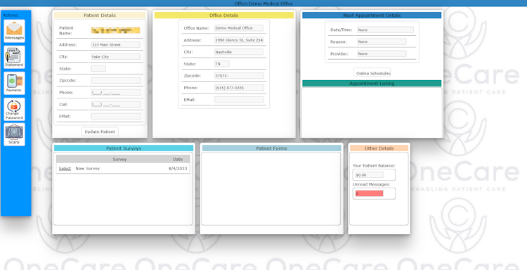 OneCare is an all-in-one, web-based practice management, documentation, and patient communication solution designed to simplify workflows and enable healthcare providers to go paperless. OneCare offers a comprehensive suite of features to help users streamline practice operations across a variety of clinical specialties, including mental health, physical therapy, primary care, surgery, chiropractic, and rural health.