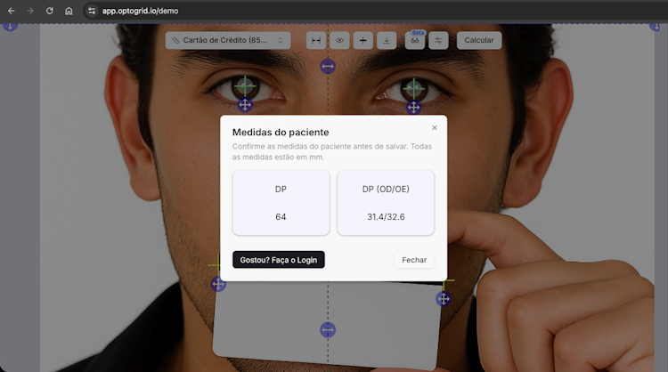 Optogrid Virtual Pupilometer is a web-based platform that enables optical professionals to perform precise pupillary distance and segment height measurements remotely. The system utilizes advanced technology to calculate accurate measurements from photographs, allowing opticians, optometrists, and eyewear retailers to obtain Pupillary Distance (PD), Dual PD, and Segment Height (SH) measurements without requiring customers to visit physical locations.