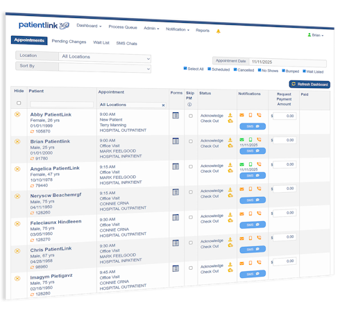 Patient-entered information is automatically delivered into EHR and/or practice management system as discrete, structured data. Clinics can also track patient progress in real time, verify submissions, and manage all incoming data through PatientLink’s centralized administrative dashboard.
