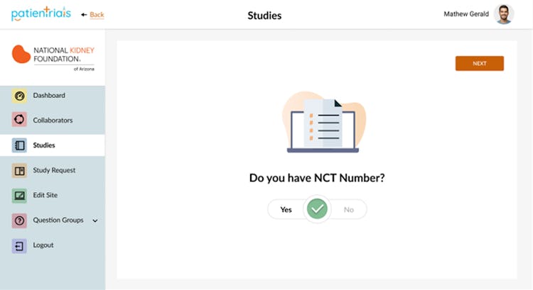PatienTrials’s user interface