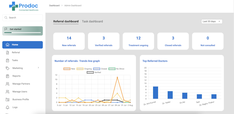 Prodoc is a cloud-based software designed to connect data, teams, leads, and partners to deliver patient care through a unified platform. Users can streamline referrals, monitor conversion rates, and more. It helps managers optimize field sales performance for hospitals or centralize lead management for sales interactions.