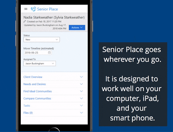 Senior Place is a placement and referral agency software solution. Manage and search through all clients in an interactive table, manage emails and intake forms with templates, and compare the best options side by side with your clients.