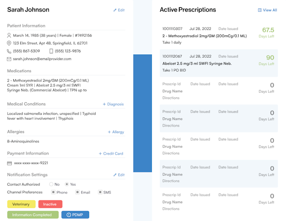 - Prescriptions management dashboard to understand intake, fulfillment, and refill workload in one simple screen.