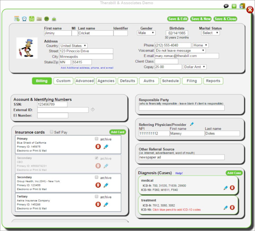 Therabill’s user interface