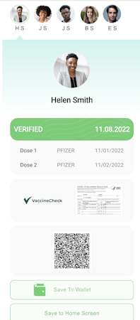 VaccineCheck Digital Health Pass’s user interface