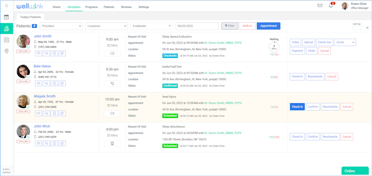 WellWink provides online medical scheduling, appointment reminders, telehealth, patient engagement, eMail/SMS marketing, reputation management, chronic care management, remote patient monitoring & much more. It integrates with your practice management and EHR to seamlessly send and receive patient data in real-time!