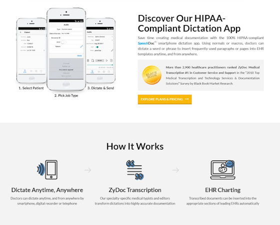 ZyDoc's mobile recording app for iOS and Android enables doctors to view their schedule, select a patient and job, and dictate clinical notes via smartphone. Doctors can use custom templates and set default text, standard clauses, and documentation by exception to help shorten dictation time, as well as sign reports from anywhere using any connected device. Our scalable medical documentation solutions are in compliance with all data privacy mandates, and transcriptions are delivered with near perfect accuracy, including comments or suggestions for faster review and signature.