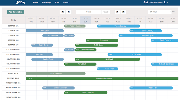 1Day is a hospitality property management system that helps small to midsize hotels handle reservations, room availability, pricing, guest profiles, contacts, and more. It allows hotel managers to maintain a list of guests' preferences and use color-coded tags to alert staff members about specific issues.