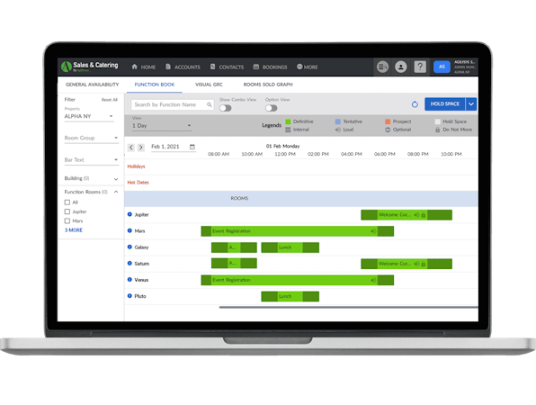 Agilysys Sales & Catering is a sales and event management software designed to helps hotels, resorts, conference centers, and other event spaces of all sizes manage bookings, schedules, payments, events, and more on a unified portal. The platform enables organizations to capture guest information like account number, name, arrival date, and contract details, and assign sales, conference, and catering managers for the entire stay.