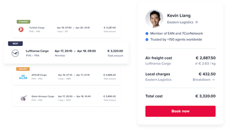 The platform offers the speed and flexibility of static rates combined with the accuracy of live rates updated in real-time. Users get a market overview within seconds to quote customers quickly. cargo.one also features an intuitive booking experience that allows users to book, modify, or cancel bookings with just a few clicks. The platform conducts over 5,000 quality checks per search to ensure high booking acceptance rates.